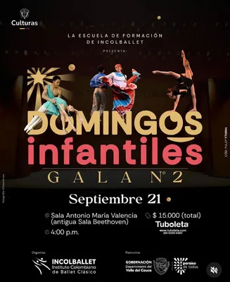 Este 21 de septiembre regresa la temporada de domingos Infantiles en el Instituto Departamental de Bellas Artes, a las 4:00 p.m, para disfrutar de una tarde llena de cultura y danza, donde los estudiantes tienen el escenario para mostrar todas las coreografías y los cono-cimientos adquiridos y practicados a diario. Entrada $15.000