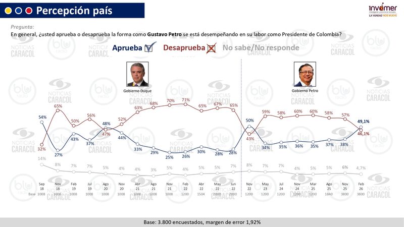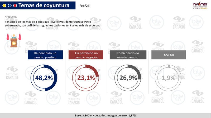 En los temas de coyuntura de Colombia y del gobierno de Gustavo Petro, así opinan 3.800 encuestados, según Invamer S.A.S.
