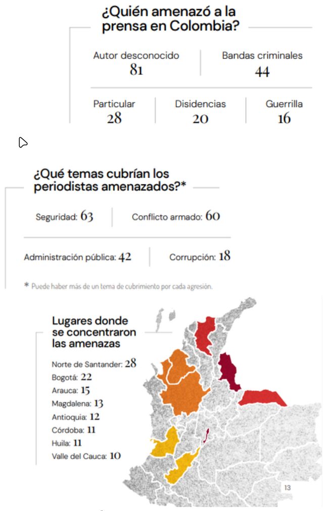 El efecto fue silencioso, pero profundo. En diferentes departamentos del país se configuraron escenarios de censura y autocensura, impulsados por el miedo a investigar temas sensibles: la gestión de funcionarios y recursos públicos, las dinámicas del conflicto armado, la seguridad ligada a estructuras criminales y las tensiones propias de la política local. En muchos casos, el riesgo no fue abstracto, sino una advertencia concreta sobre los límites de lo que podía —o no— publicarse.