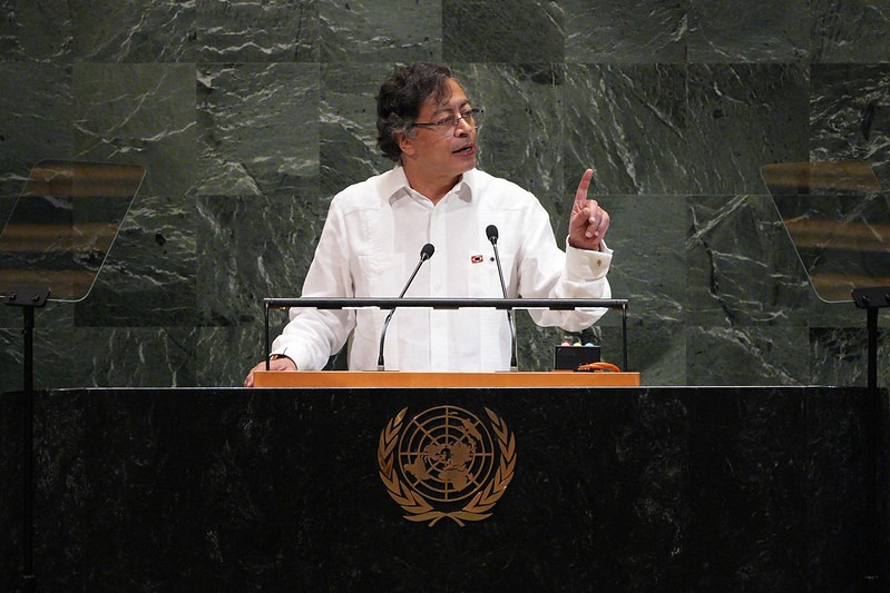 “La culpa no la tienen las cosas inertes, como el petróleo, el carbón u otros venenos, sino la culpa la tienen seres humanos de poder, a los cuales la codicia le ha ganado el corazón, y les llamamos narcotraficantes”, por lo que sentenció: “No hay una guerra contra los narcotraficantes”, sino que los misiles “caen sobre la pobreza, no sobre donde está el lujo”, fue una de las sentencias del presidente de la República, Gustavo Francisco Petro Urrego, ante la asamblea de las Naciones Unidas.