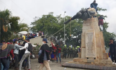 El 28 de abril de 2021, la estatua de Sebastián de Belalcázar, en Cali, fue derribada como uno de los elementos más significativos del ‘estallido social’.